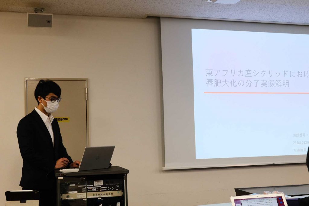修士論文発表会 投稿日: 2023年2月3日2023年2月27日 投稿者: aibara 修士論文発表会にて,二階堂研から5名が発表しました。 今年発表する皆さんはコロナ流行後にラボ配属となり,学会発表や中間発表を含め,対面での発表経験のないまま本番を迎える事になりました。慣れない発表方法で苦労は多々ありましたが,それに見合う成果を出せたのではないかと思います。 西浦さん,待井君,桐ケ窪君,久保田君,黒瀬さん,お疲れさまでした! 西浦さんと待井君は,来年度からD1として引き続き二階堂研で研究を行います。今後ともよろしくお願いします。