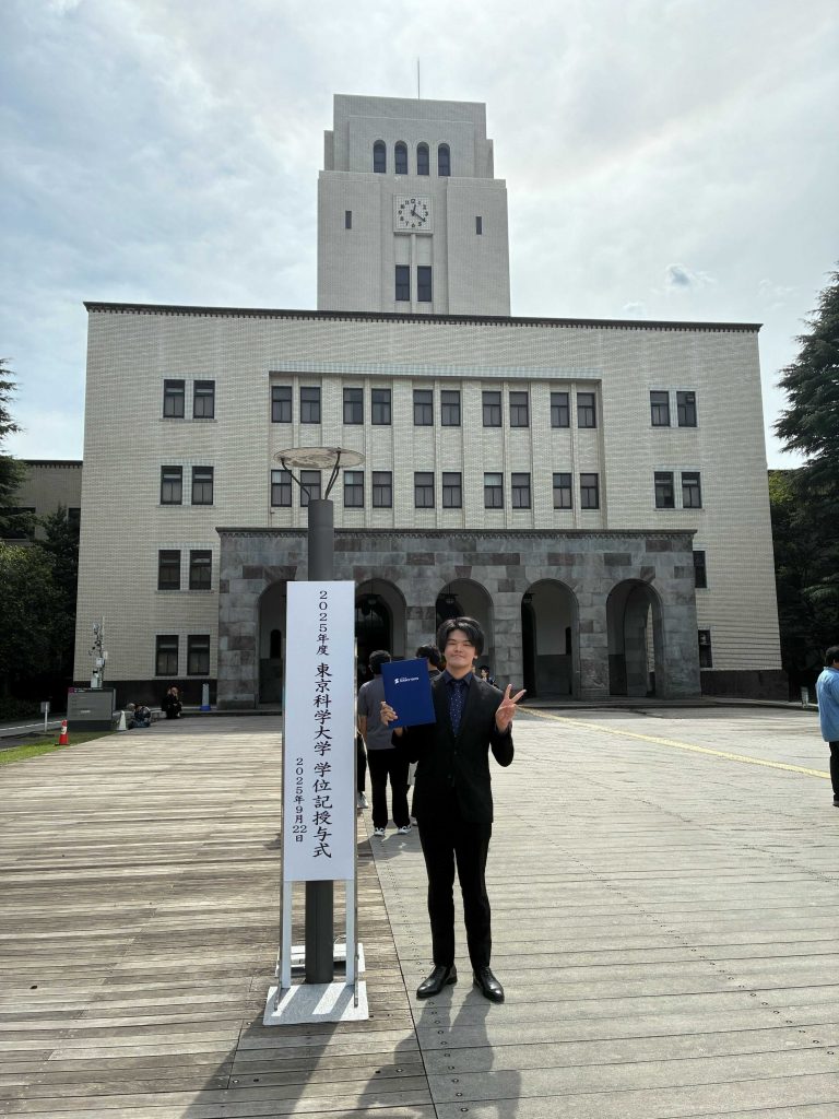 蒲原くん卒業 投稿日: 2025年9月22日 投稿者: 小林愛実 B4の蒲原くんが大学を卒業しました! 蒲原くんは早期卒業という学部を3.5年で卒業できる制度を使っているため、9月に卒業を迎えます。 10月からも二階堂研でシクリッドの研究を続けるということです。これからもよろしくお願いします!
