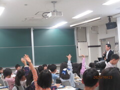 清水窪小学校 特別授業 投稿日: 2025年10月24日2025年10月27日 投稿者: 小林愛実 清水窪小学校の小学2年生の方を対象に二階堂先生が模擬授業を行いました。 清水窪小学校のブログ(10月23日記事)でも紹介して頂きました。 写真は清水窪小学校ブログより転載させていただきました。