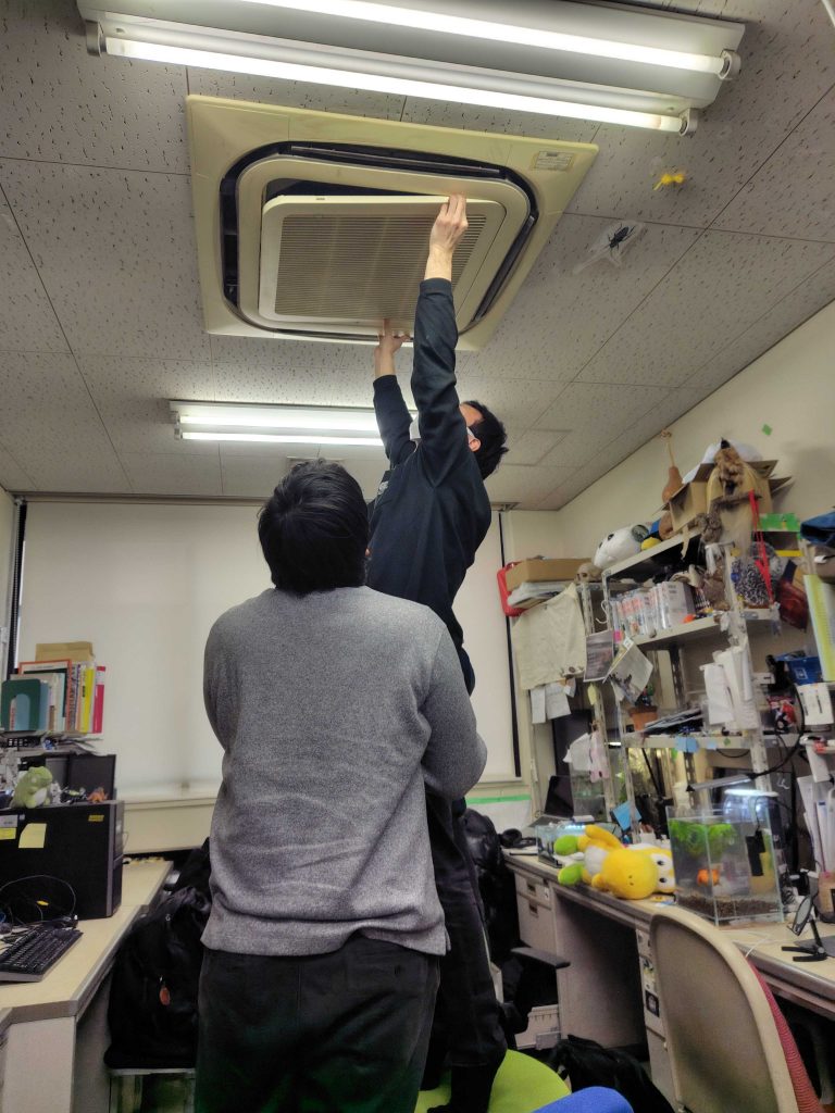 大掃除&工大祭打ち上げ 投稿日: 2025年12月20日2025年12月20日 投稿者: 小林愛実 年末恒例の大掃除をしました!! 汚れがたまっていた床がぴかぴかになり、気分もすっきりです。 今年はB3の人たちも手伝ってくれたのでいつもよりはやく終わらせることができました。ありがとう~! ↑ポリッシャー掛け職人の長澤さん ↑窓ふき職人のB4德元くん ↑エアコンのフィルター掃除職人の長澤さん 大掃除のあとは、工大祭の打ち上げで焼肉屋さんに! 美味しかったです!!